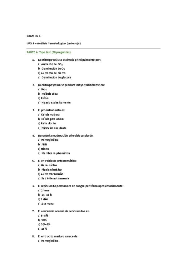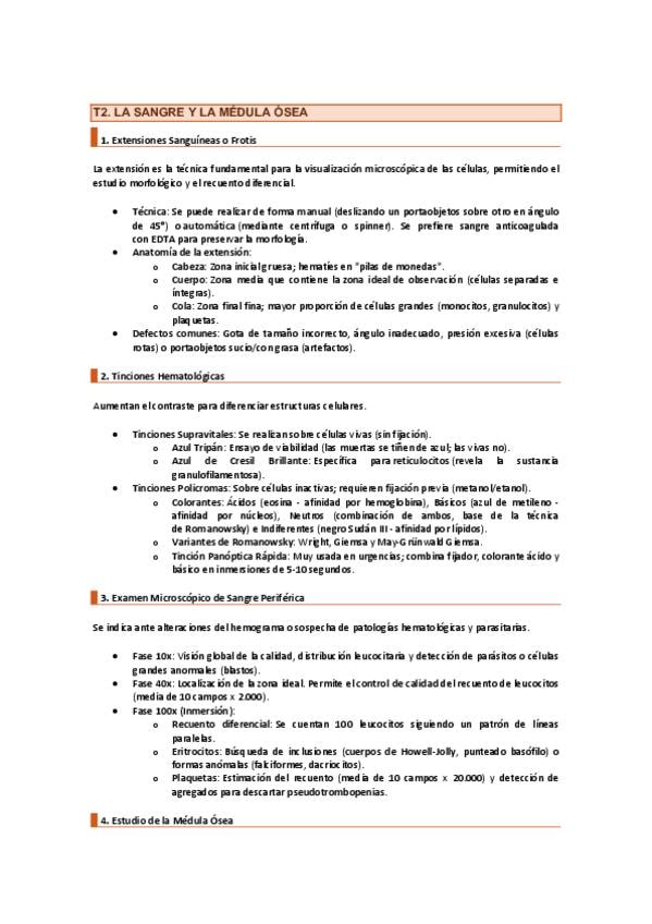 Resumen Unidad 3 Recuentos celulares: el hemograma, resumen técnica 80-20 y preguntas tipo test