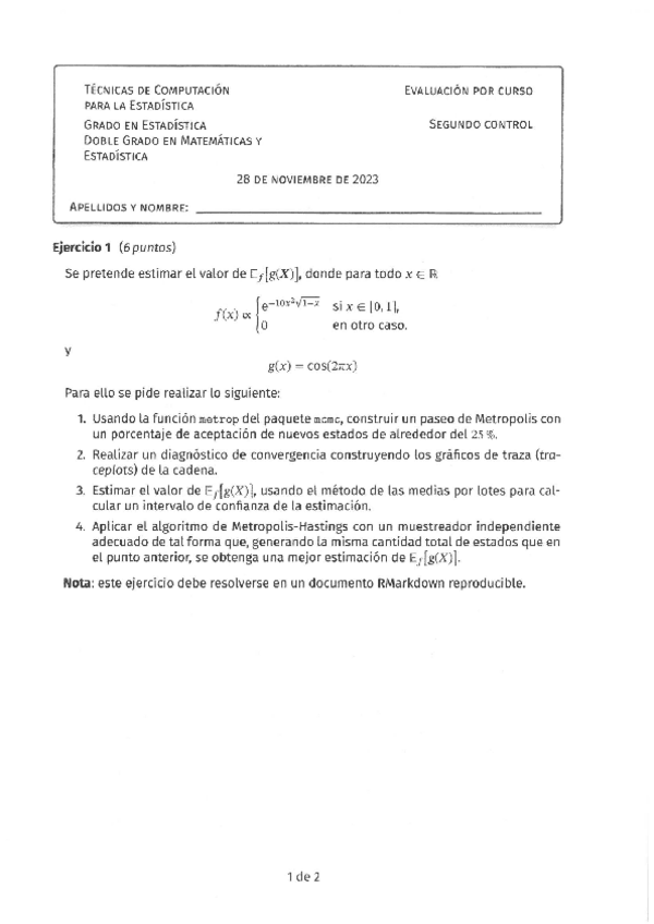 He publicado nuevos examenes de 4º Técnicas de Computación para la Estadística: Ejercicio-2-Parcial-2.pdf