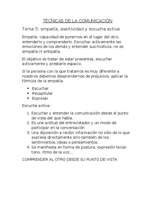He publicado nuevos apuntes de 1º Técnicas de Comunicación en Fisioterapia: TEMA-5-COMUNICACION-EFICAZ-EMPATIA-ASERTIVIDAD-Y-ESCUCHA-ACTIVA.pdf