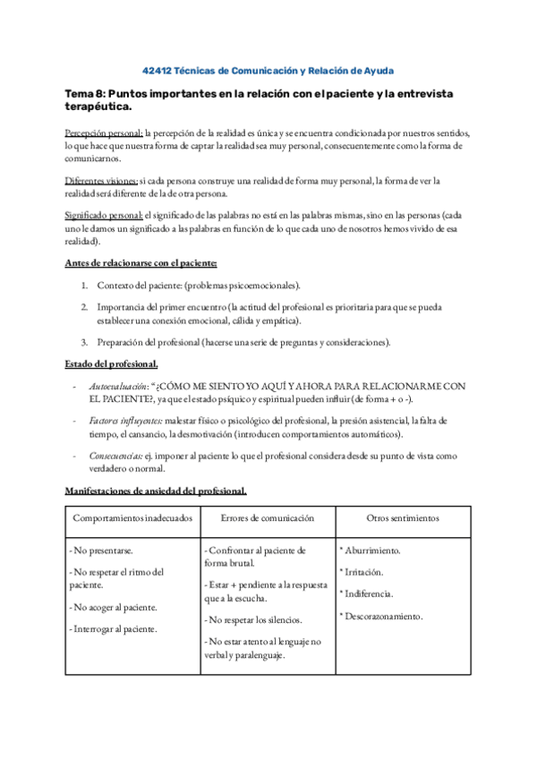 Temario Técnicas de Comunicación y Relación de Ayuda