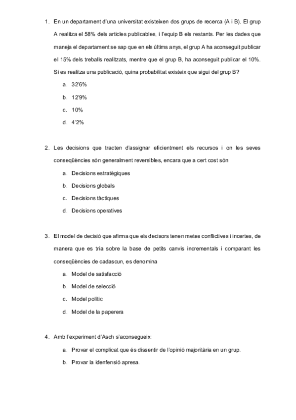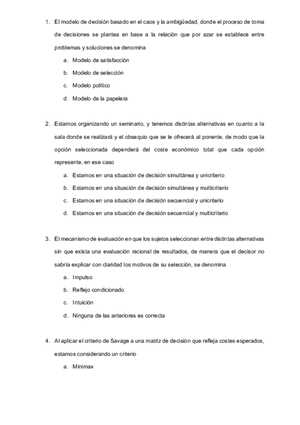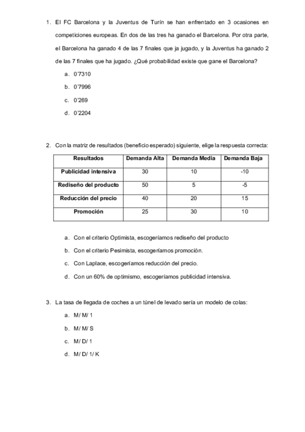 He publicado nuevos examenes de 4º Técnicas de Decisión Empresarial: Examen-Final-2019.pdf