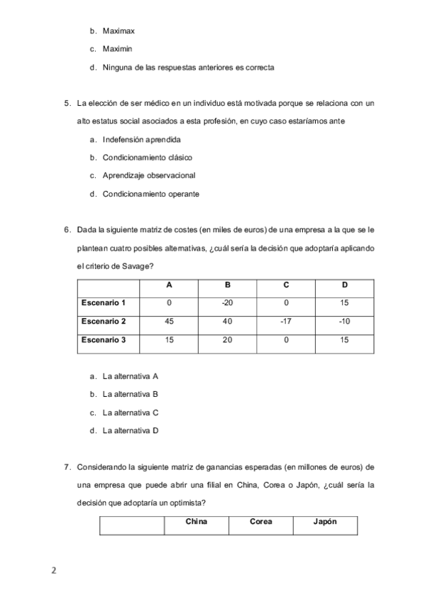 He publicado nuevos examenes de 4º Técnicas de Decisión Empresarial: Examen-Final-2022.pdf
