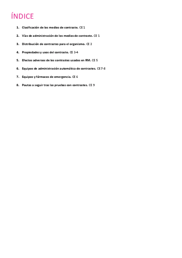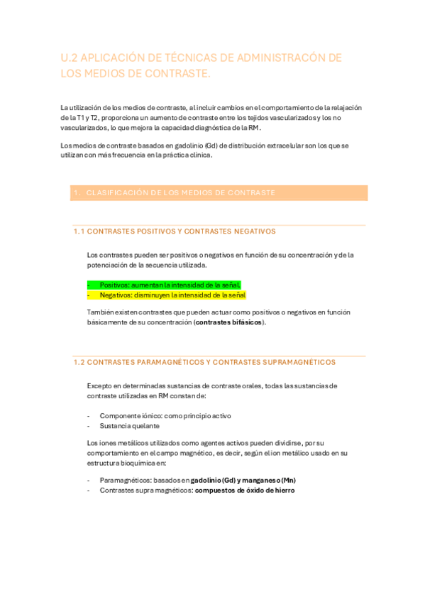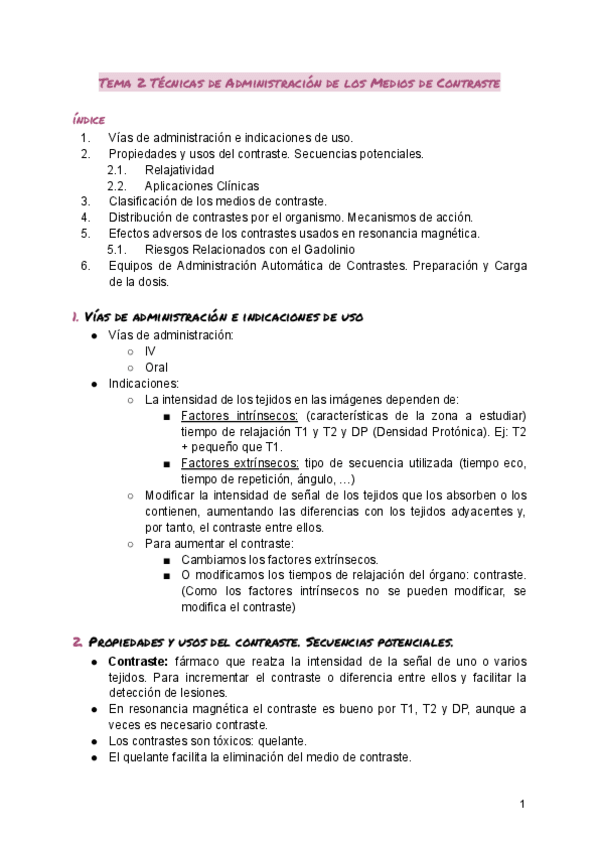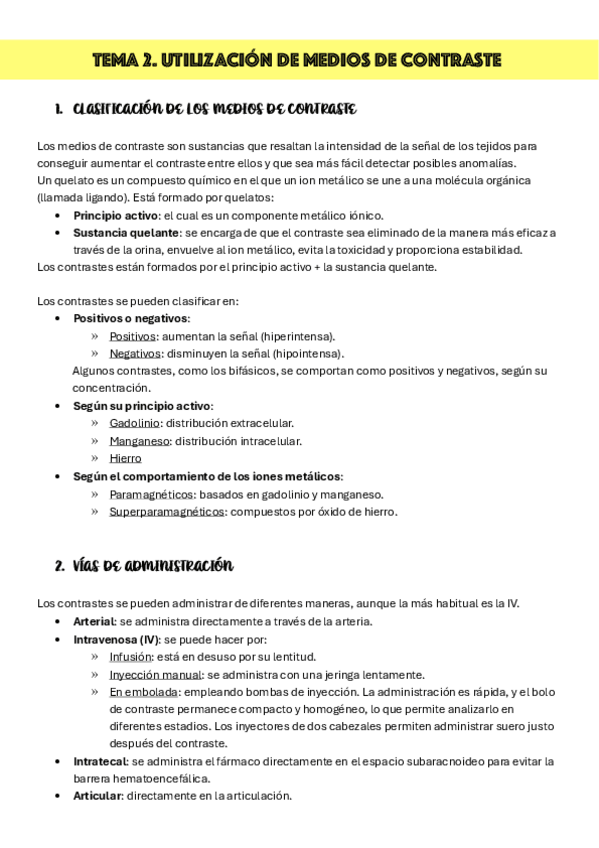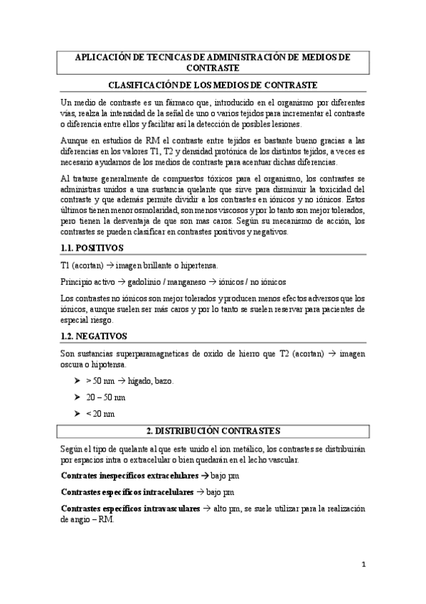 Clasificación de los medios de contraste, distribución de contrastes, vías de administración e indicaciones de uso, propiedades y uso del contraste, efectos adversos, equipos de administración automática de contrastes.