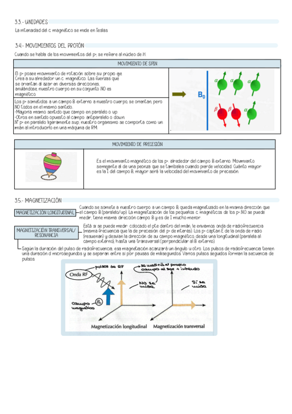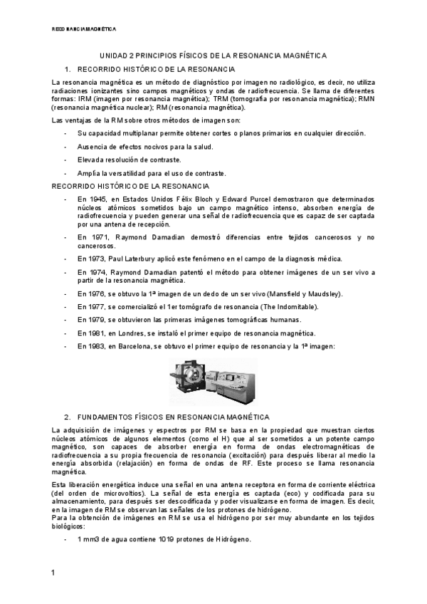 Historia de la RM, fundamentos físicos, unidades de medida del campo magnético, movimiento del protón, fenómeno de la RM.