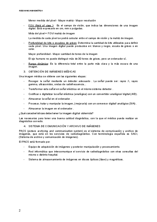 Características, obtención de imágenes medicas, PACS.