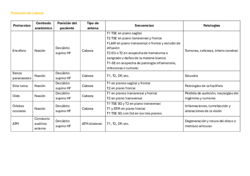 Interpretación de la solicitud de exploración, posicionamiento del paciente en la mesa de exploración, bobinas de radiofrecuencia, centrado y colocación definitiva en la posición, parámetros de estudio: intrínsecos y extrínsecos, protocolos de exploración
