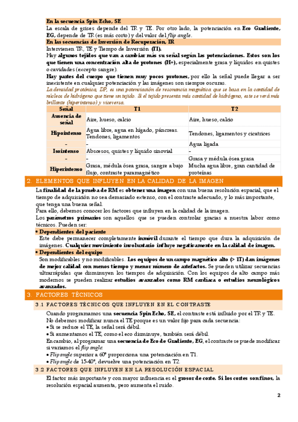Tipos de secuencias: spin-eco, gradiente de eco, hibridas. Elementos que influyen en la calidad de la imagen. Secuencias: parámetros que determinan la calidad de la imagen. Clasificación de artefactos. Principales medidas para corregir o evitar los artefa