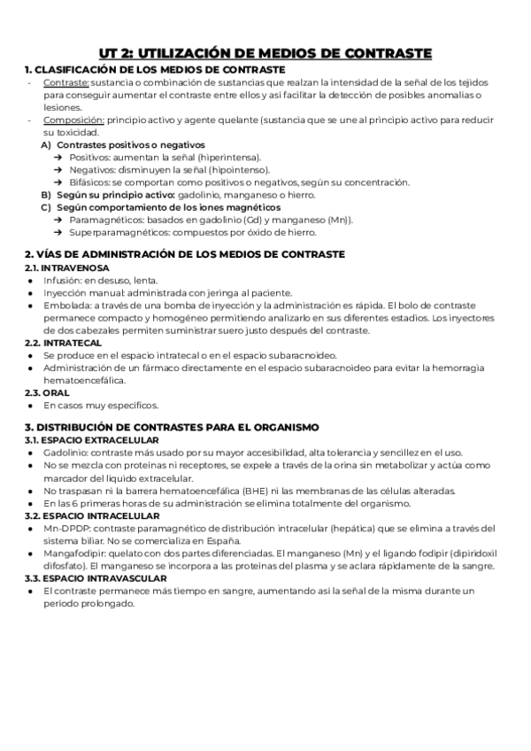 Tema 1: preparación de la exploración de RM Tema 2: técnicas de administración de medios de contraste en RM