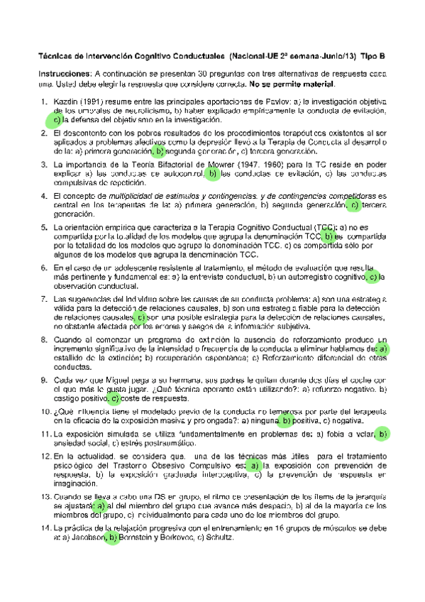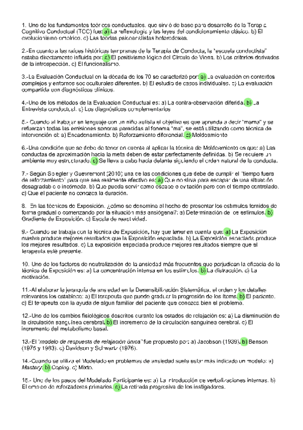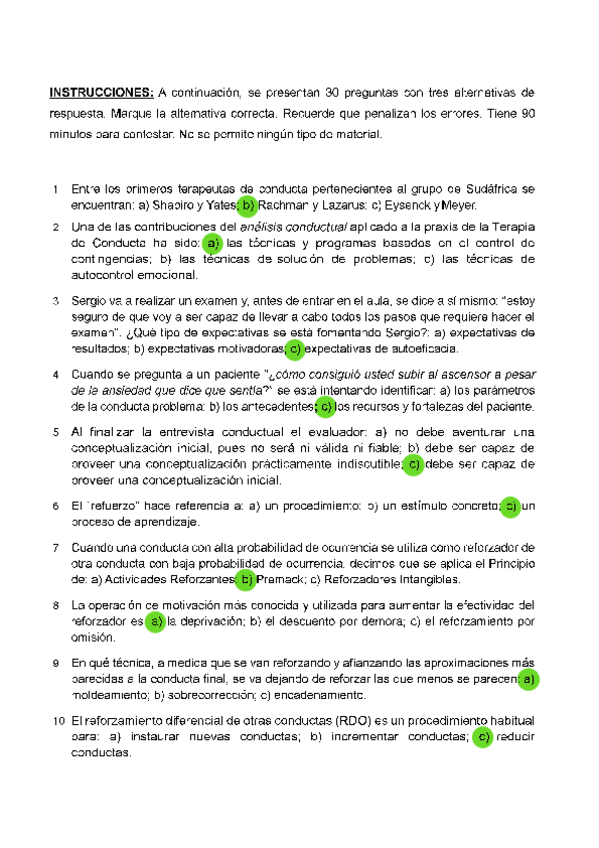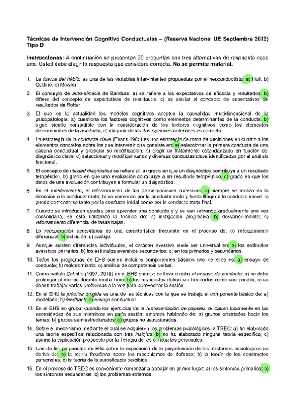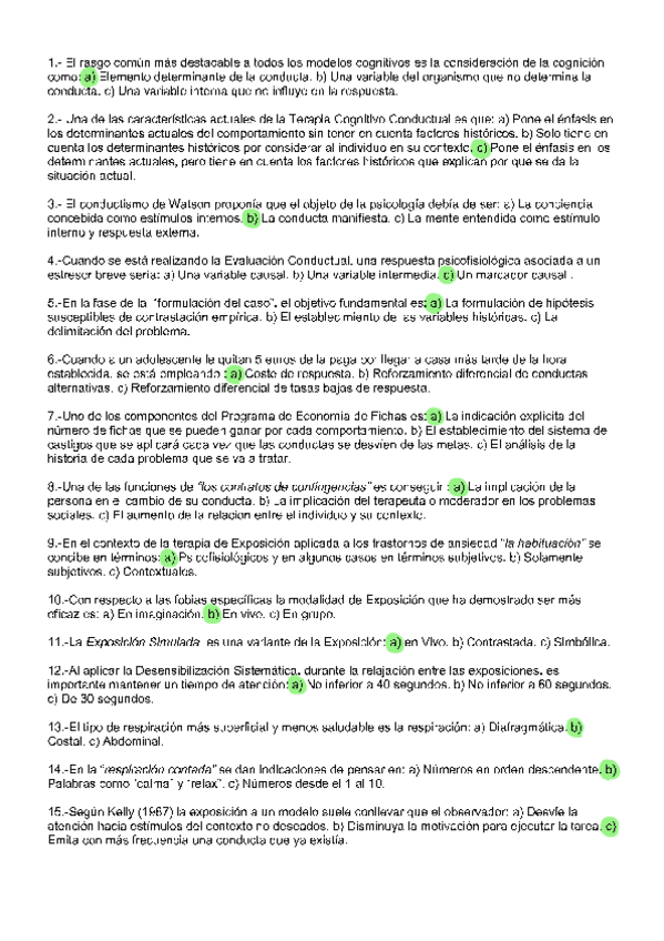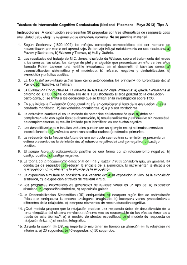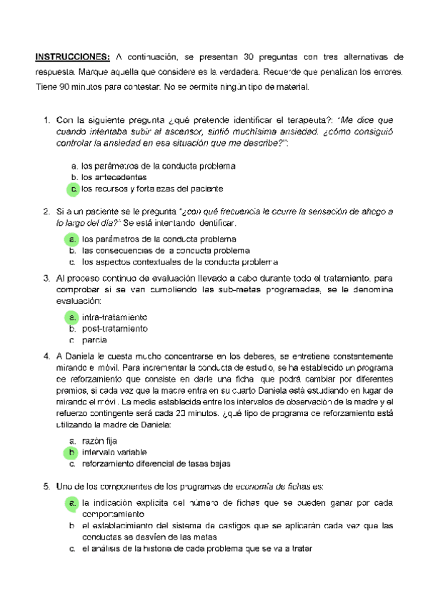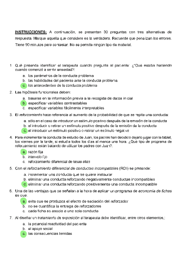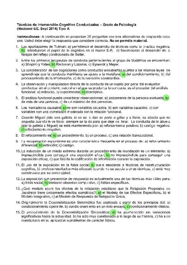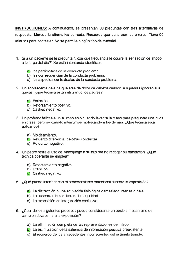 EXAMENES RESUELTOS AÑO 2024-2025 TENCICAS DE INTERVENCIÓN COGNITIVO-CONDUCTUALES