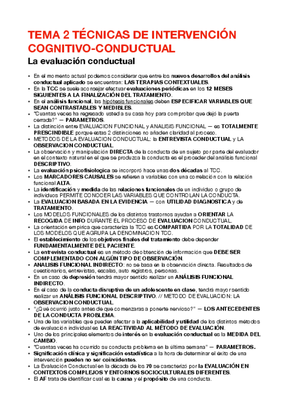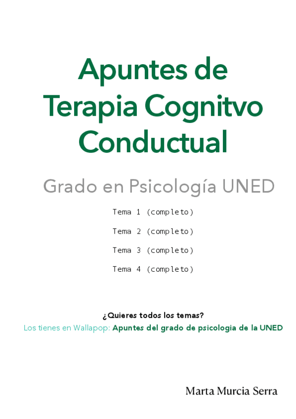 Aquí tienes los temas uno y dos completo de la asignatura de técnicas intervención cognitivo-conductual, si te han gustado estos apuntes, puedo darte el resto.