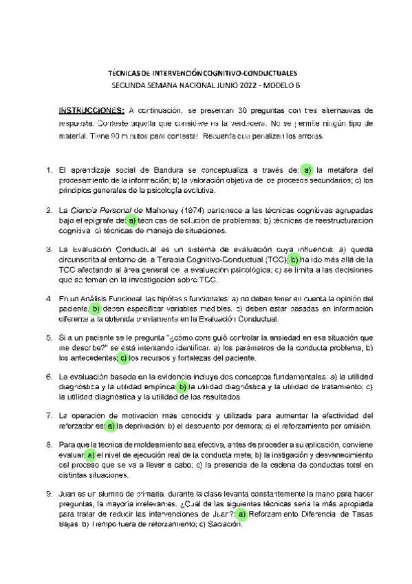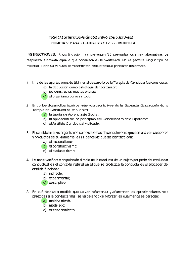 EXAMENES RESUELTOS AÑO 2021-2022 TÉCNICAS DE INTERVENCIÓN COGNITIVO CONDUCTUALES