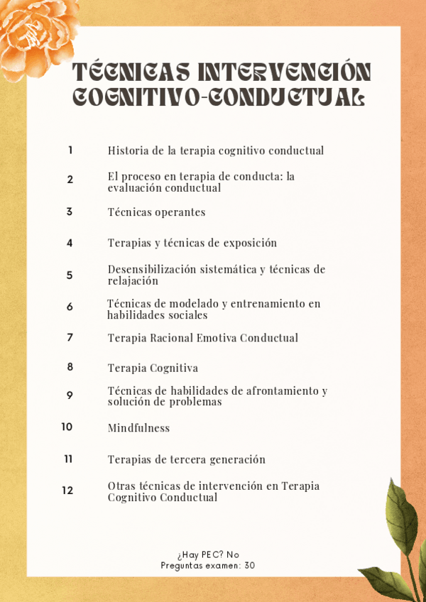 Temario asignatura técnicas de intervención cognitivo-conductuales, indice de la asignatura, portada para apuntes
