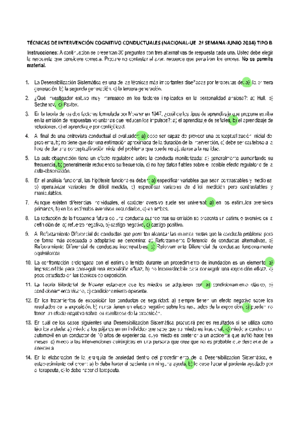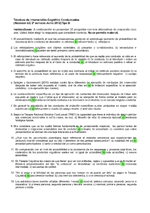 EXAMENES RESUELTOS AÑO 2023-2024 TÉCNICAS DE INTERVENCIÓN COGNITIVO CONDUCTUALES