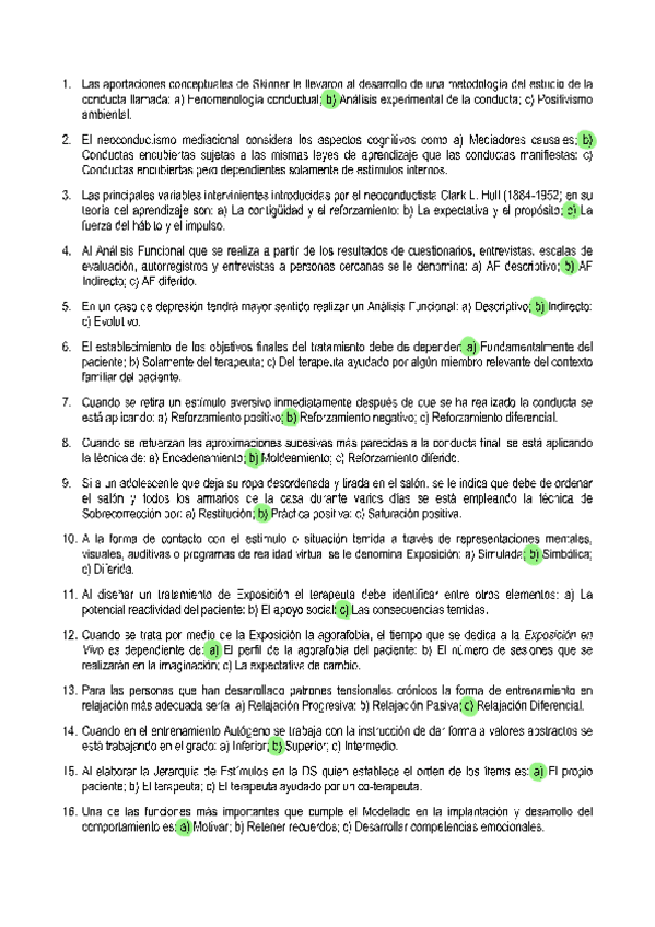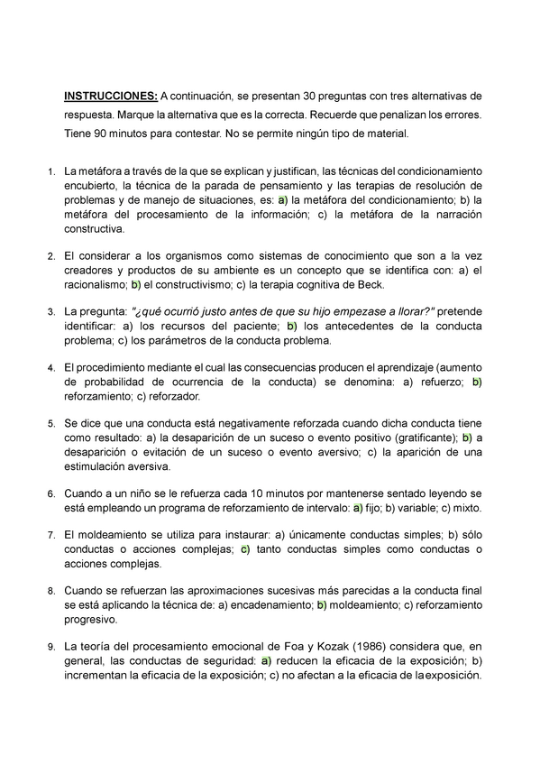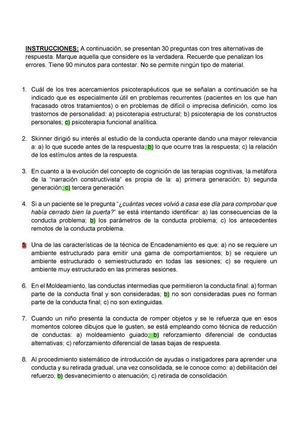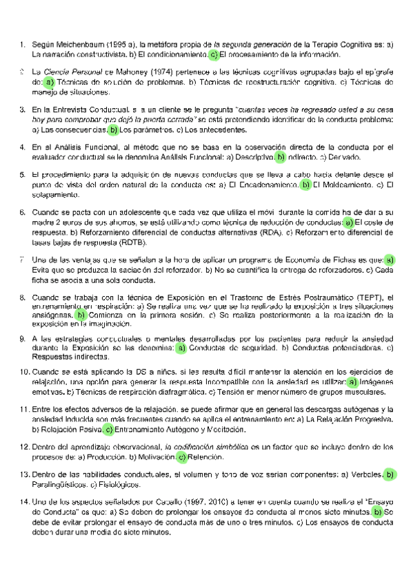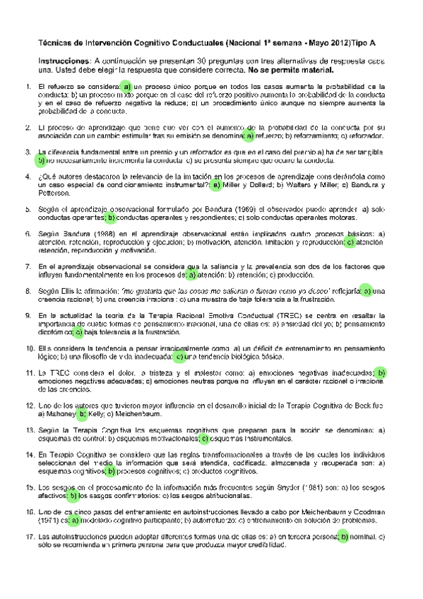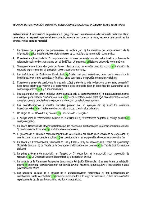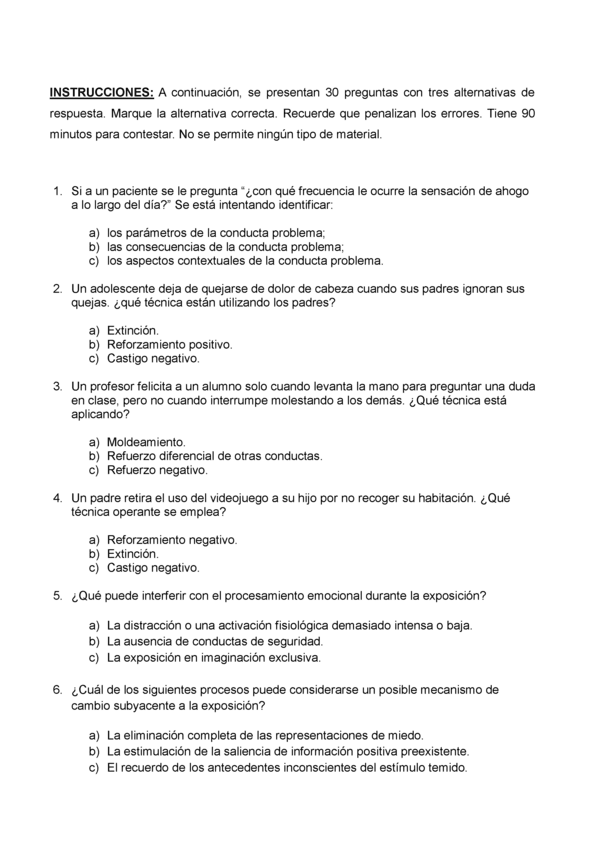 EXAMENES RESUELTOS AÑO 2024-2025 TENCICAS DE INTERVENCIÓN COGNITIVO-CONDUCTUALES