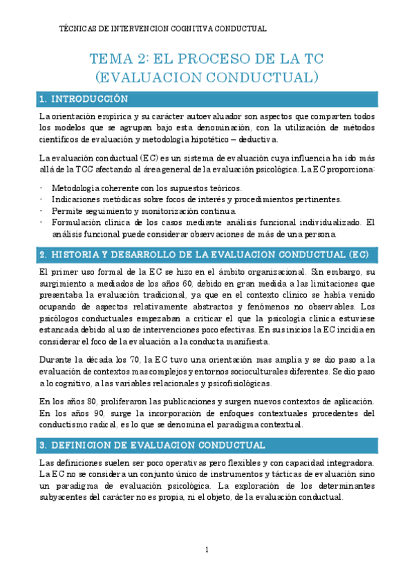 Aquí tienes los temas uno y dos completo de la asignatura de técnicas intervención cognitivo-conductual, si te han gustado estos apuntes, puedo darte el resto.