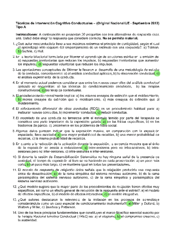 EXAMENES RESUELTOS AÑO 2013-2014 TÉCNICAS DE INTERVENCIÓN COGNITIVO CONDUCTUALES