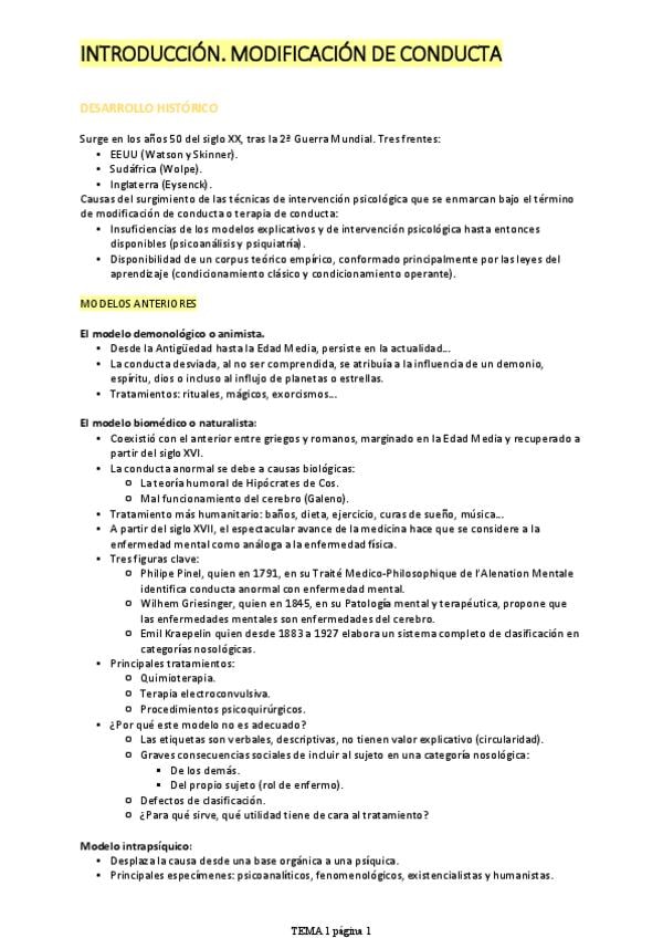 TEMARIO COMPLETO TÉCNICAS DE INTERVENCIÓN EN PSICOLOGÍA CLÍNICA I