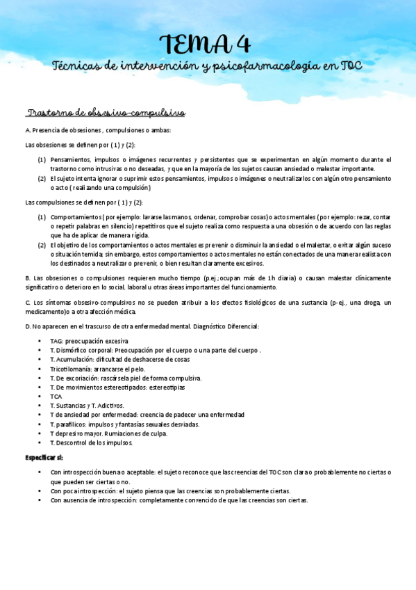 He publicado nuevos apuntes de 4º Técnicas de intervención psicoterapéutica y psicofarmacológica: Tema 4: TOC.pdf