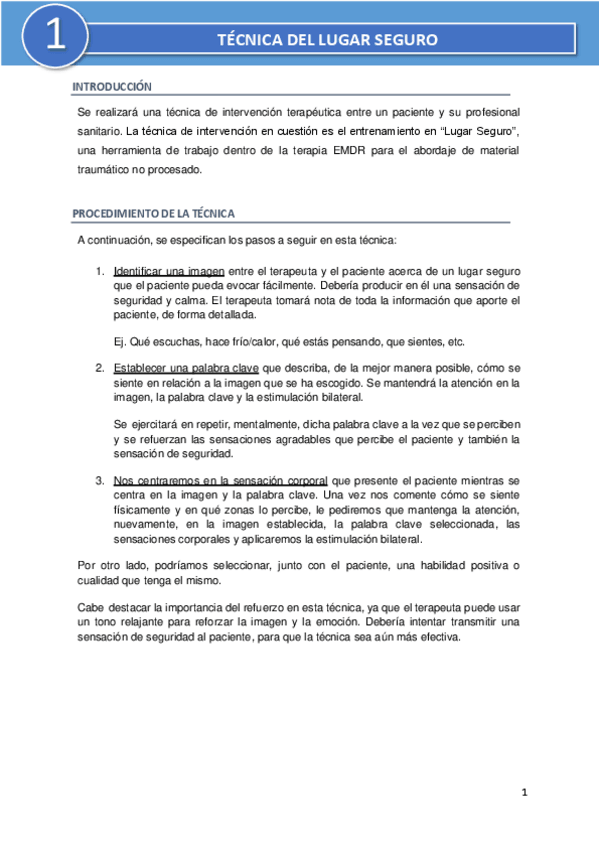 He publicado nuevos apuntes de 4º Técnicas de intervención psicoterapéutica y psicofarmacológica: TECNICA-LUGAR-SEGURO.pdf