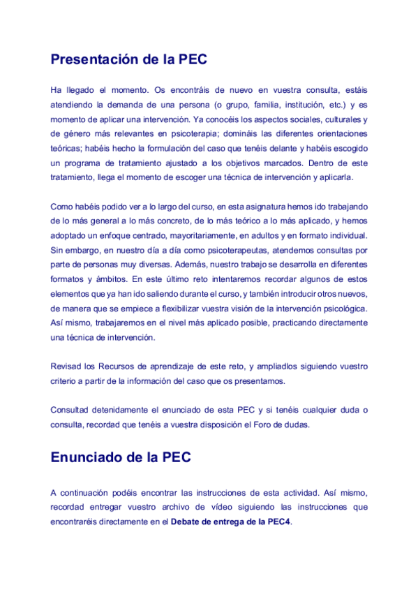 He publicado nuevos pec de 3º Tecnicas de Intervencion y Tratamiento Psicologico: Devolucion-PEC-1.docx.pdf
