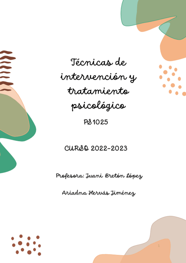 He publicado nuevos apuntes de 3º Tecnicas de Intervencion y Tratamiento Psicologico: Teoria-Tecnicas-de-intervencion.pdf