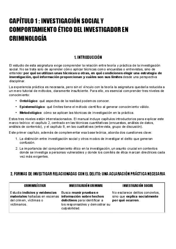 INVESTIGACIÓN SOCIAL Y COMPORTAMIENTO ÉTICO DEL INVESTIGADOR EN CRIMINOLOGÍA 1º cuatri