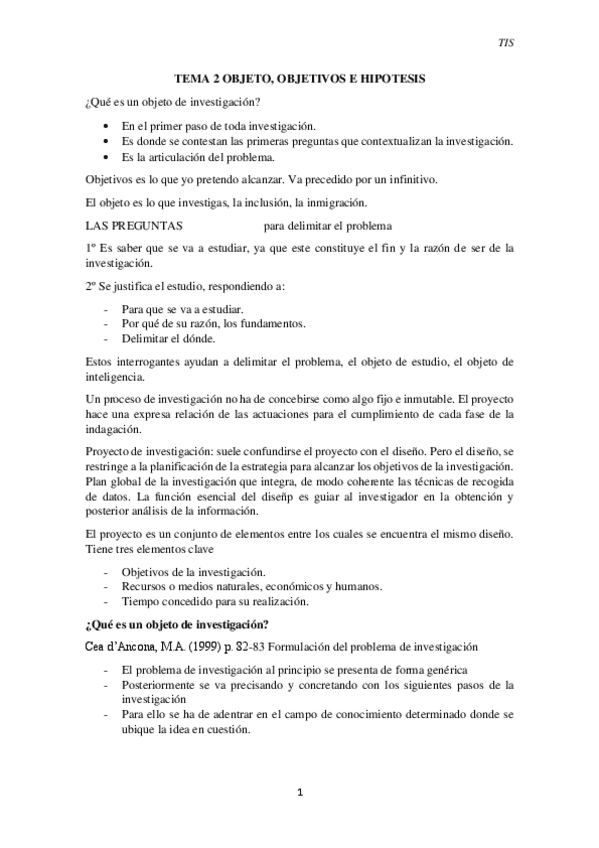 He publicado nuevos apuntes de 1º Técnicas de Investigación Social: T2_Objeto, Objetivos e Hipótesis.pdf