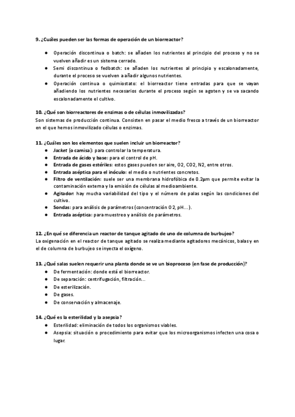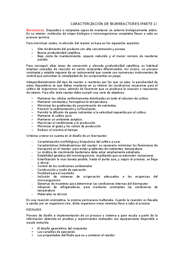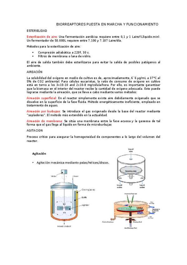 Resumen del tema 2: Biorreactores