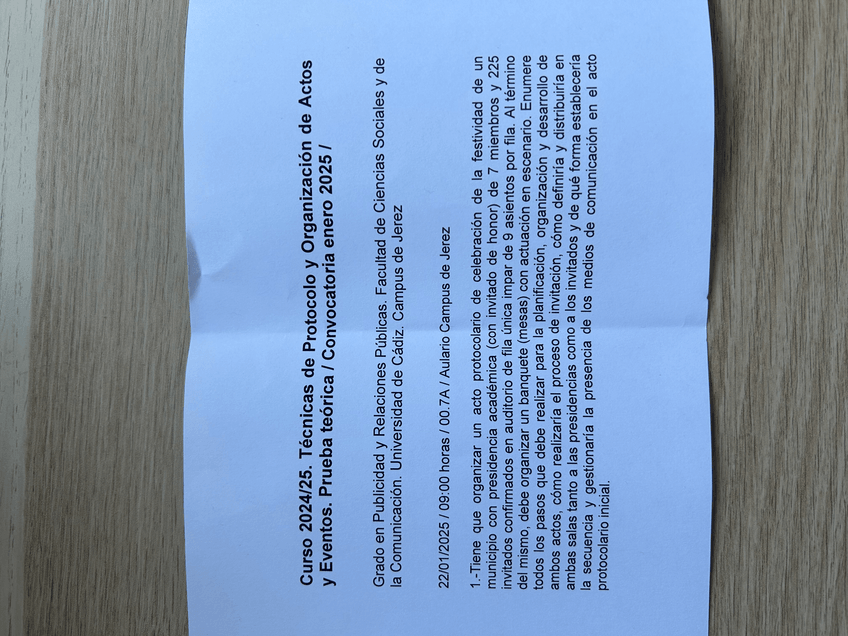 He publicado nuevos examenes de 4º TECNICAS DE PROTOCOLO Y ORGANIZACION DE ACTOS Y EVENTOS: Examen-protocolo-enero-2025.jpg