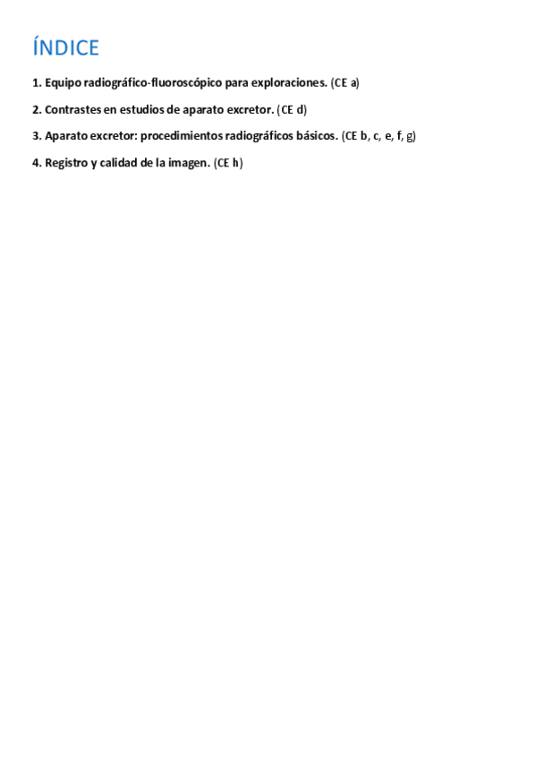 Tema 1. Exploraciones radiológicas del aparato digestivo Tema 2. Exploraciones radiológicas del sistema genitourinario Tema 3. Radiología intervencionista-angiografía