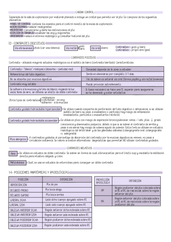 tablas de contrastes para radiografía especial: indicaciones, tipos de contraste, administración, contraindicaciones, preparación