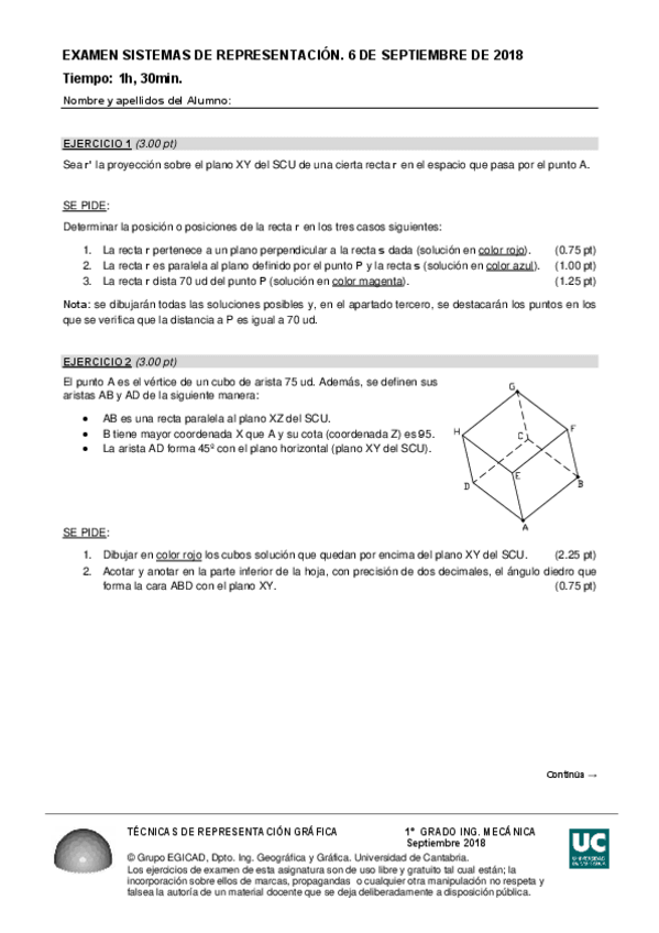 He publicado nuevos examenes de 1º Técnicas de Representación Gráfica: Enunciado-SSRRSep-18.pdf