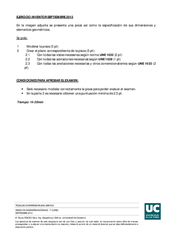 He publicado nuevos examenes de 1º Técnicas de Representación Gráfica: Inventor-Septiembre-2013.pdf