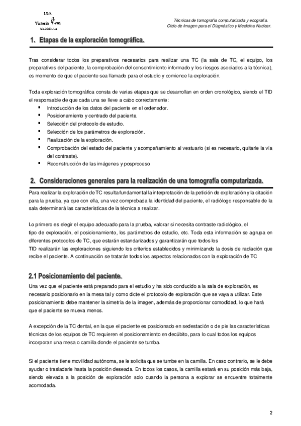 He publicado nuevos apuntes de Técnicas de Tomografía Computarizada y Ecografía: Preparacion-exploracion-TC.pdf