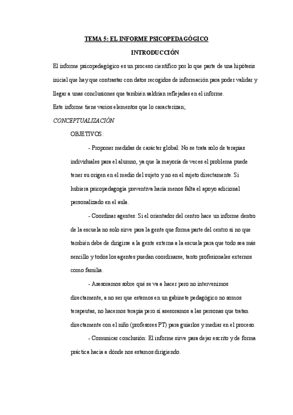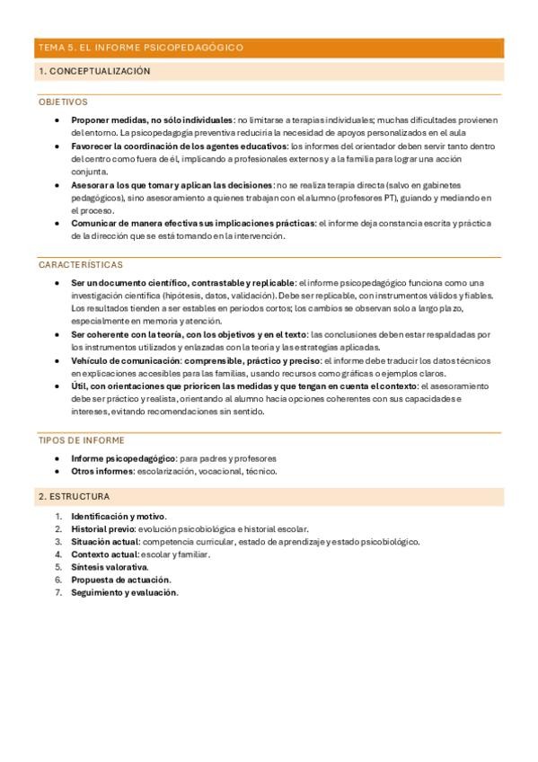 TEMA 5 INFORME PSICOPEDÁGOGICO Apunte realizado a partir de las diapositivas y las explicaciones en clase