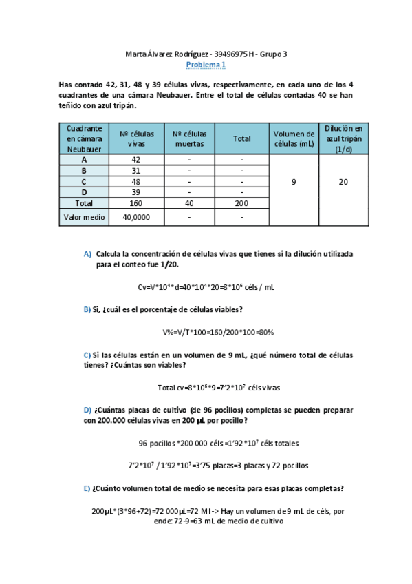 Problema y estadillo PRÁCTICA 1 Inmunología