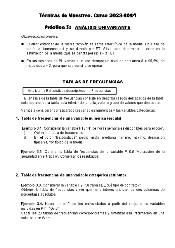 He publicado nuevos apuntes de 3º Técnicas Estadísticas de Muestreo y Análisis de Datos: EJERCICIOS-TECNICAS-PL.pdf