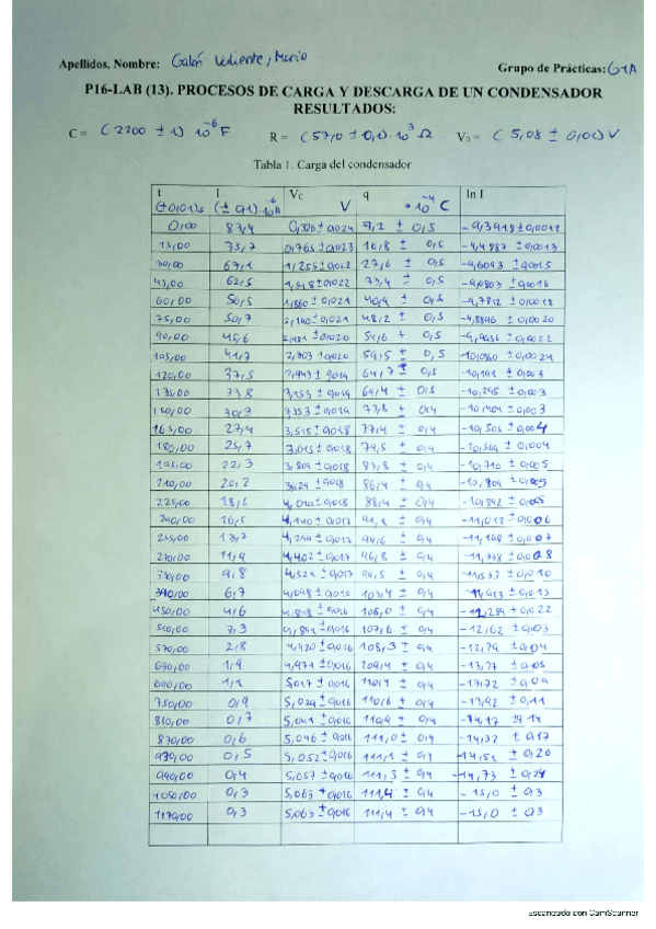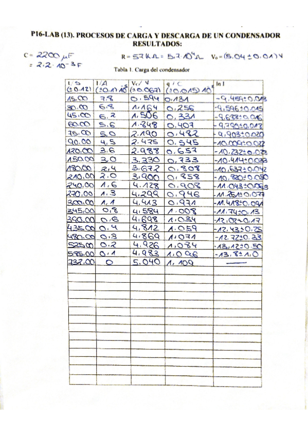He publicado nuevos practicas de 1º Técnicas Experimentales Básicas: Informe Carga y Descarga condensador Nota 10