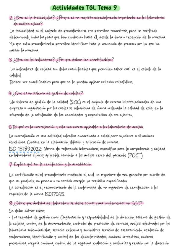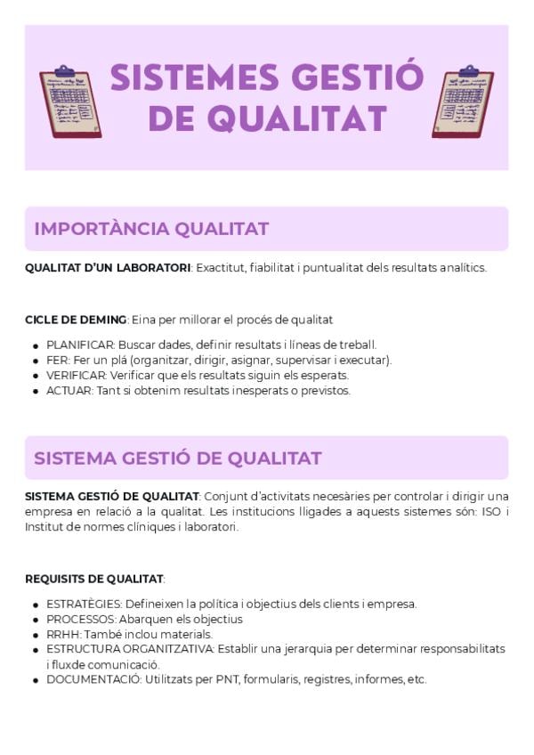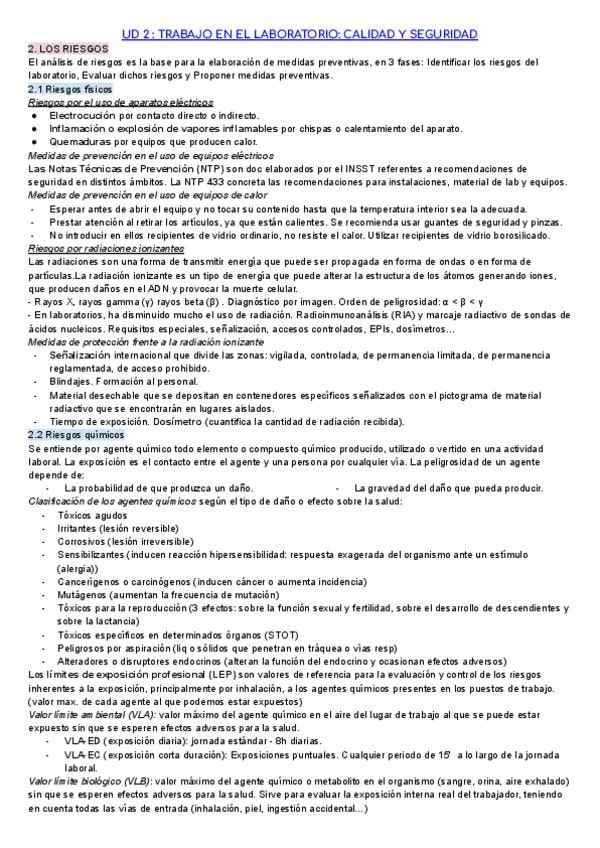 Apuntes tema 2 (TRABAJO EN EL LABORATORIO: CALIDAD Y SEGURIDAD) Técnicas Generales de Laboratorio, Laboratorio clínico y biomedico