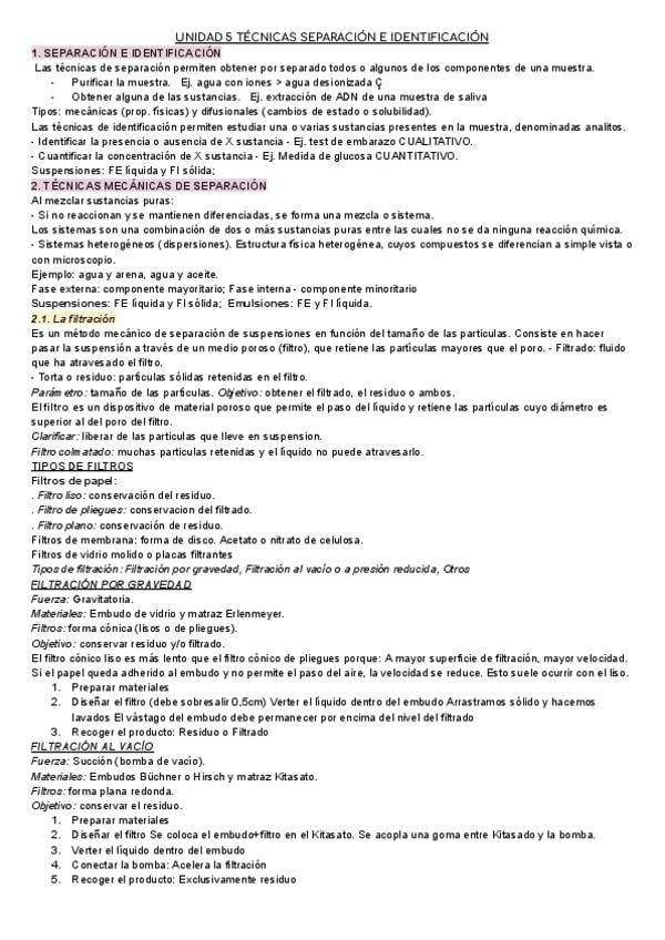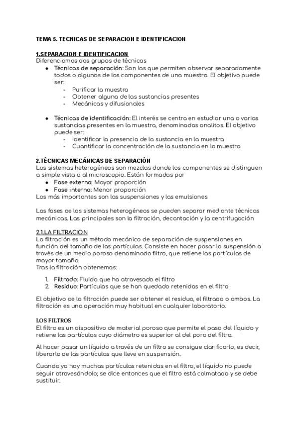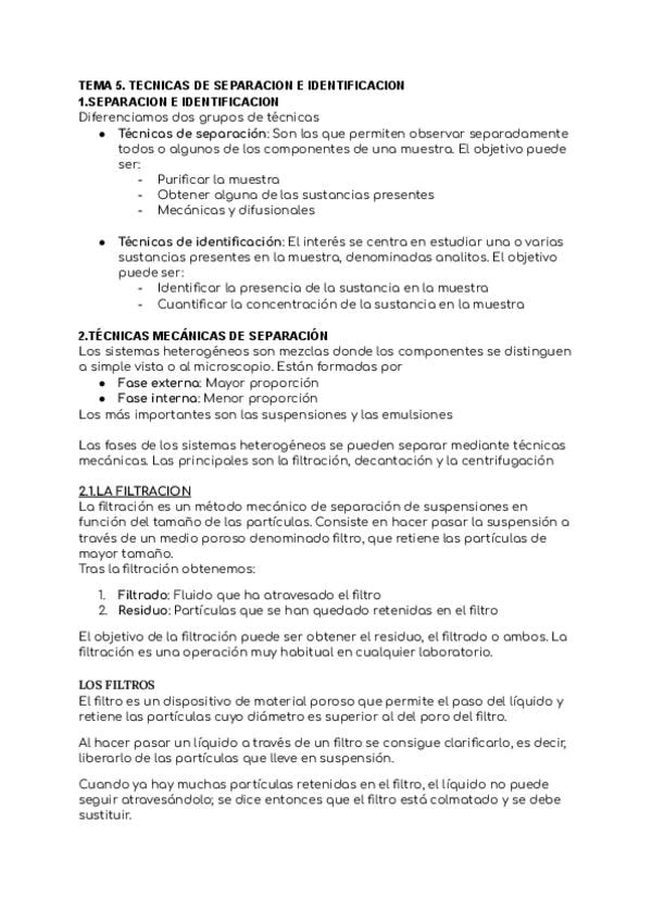 Apuntes tema 5 TÉCNICAS SEPARACIÓN E IDENTIFICACIÓN, Técnicas Generales de Laboratorio, Laboratorio clínico y biomedico
