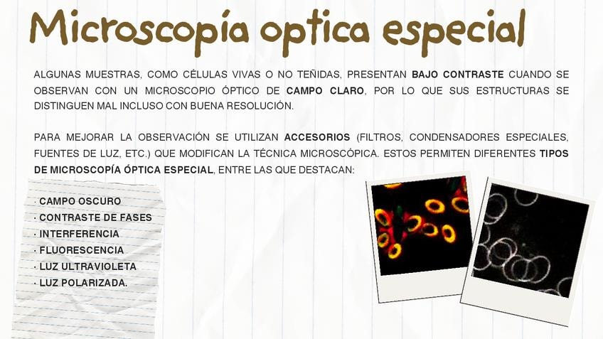 Otros tipos de microscopía de luz transmitida, fluorescencia y electrónica.