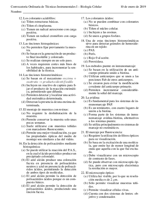 He publicado nuevos examenes de 1º Tecnicas Instrumentales I: 2019 Técnicas Instrumentales Examen Biología Celular.pdf