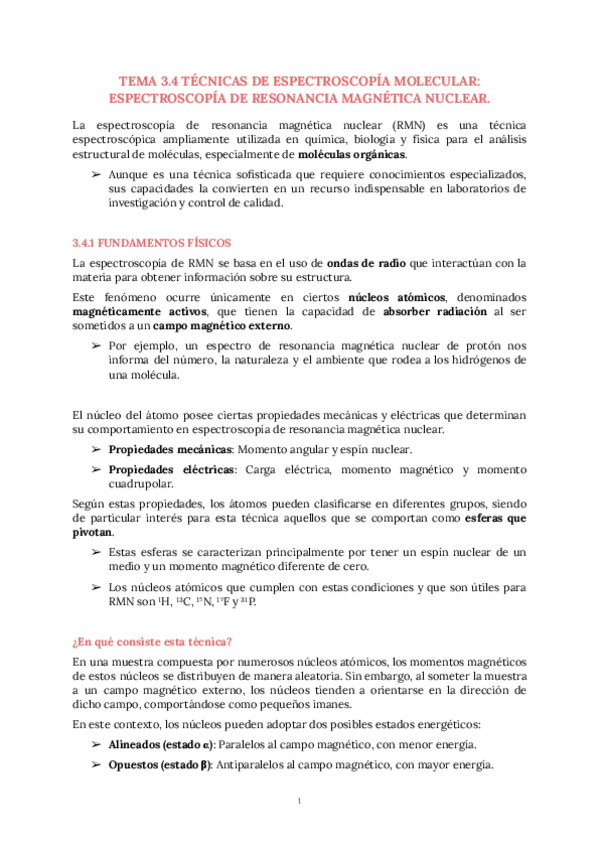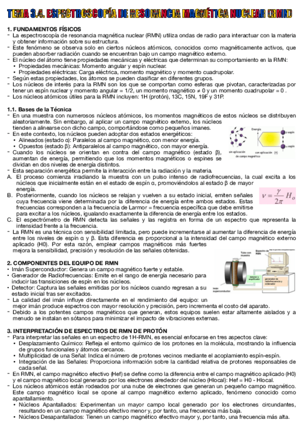 He publicado nuevos apuntes de 3º Técnicas Instrumentales: Tema 3.4 Resonancia mágnetica nuclear.pdf