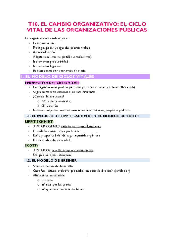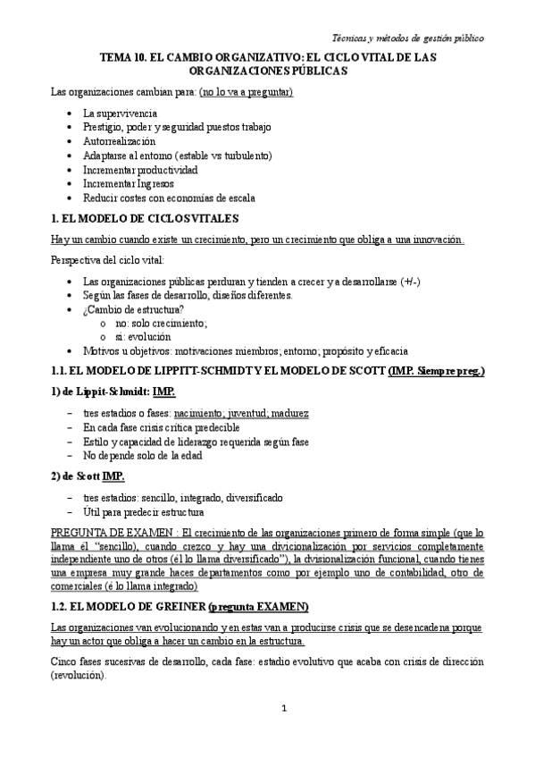 He publicado nuevos apuntes de 2º Tecnicas y Metodos de Gestion Publica: Tema 10 - El Cambio Organizativo: El Ciclo Vital de las Organizaciones Públicas.pdf