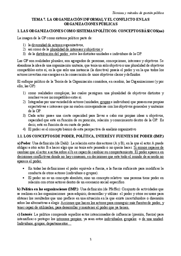 He publicado nuevos apuntes de 2º Tecnicas y Metodos de Gestion Publica: Tema 7 - La Organización Informal y el Conflicto en las Organizaciones Públicas.pdf