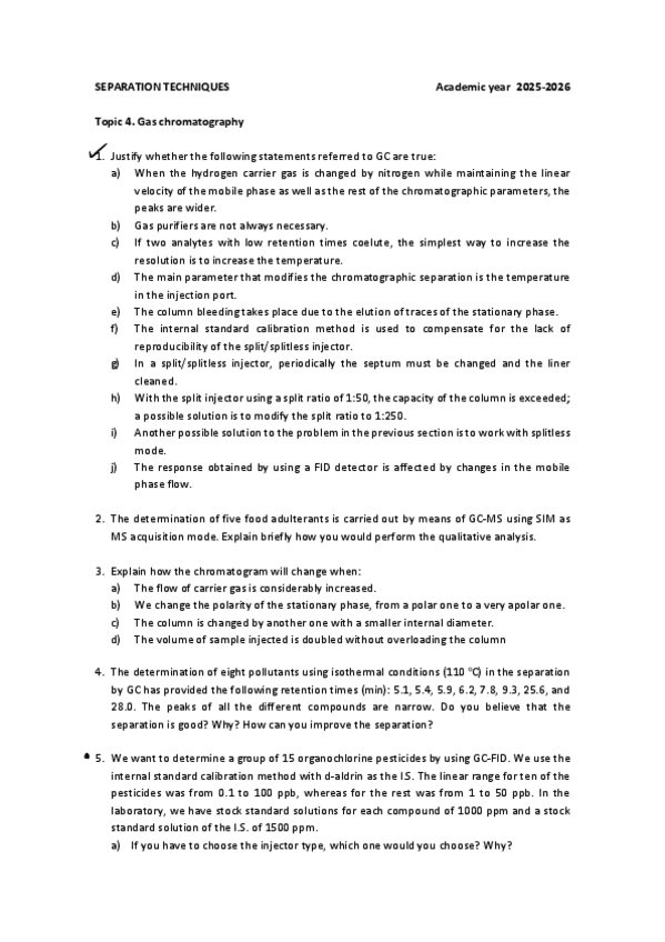 He publicado nuevos ejercicios de 3º Tècniques de Separació: ejercicios-GC.pdf
