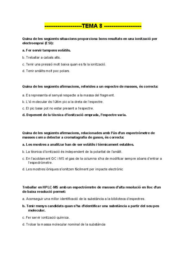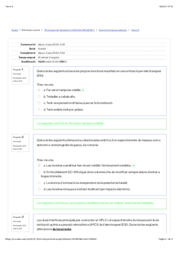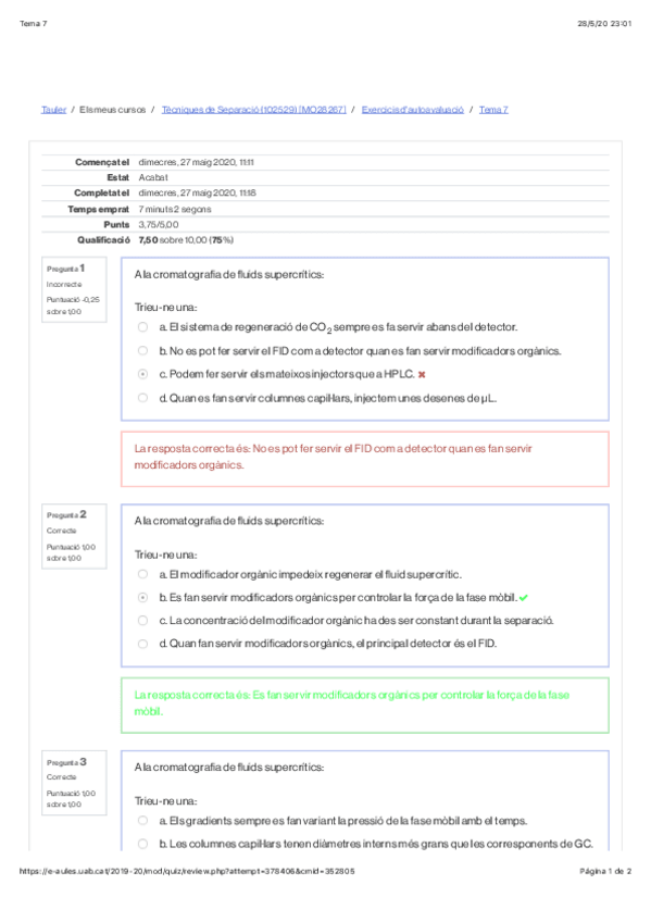 Test amb correccions + examen