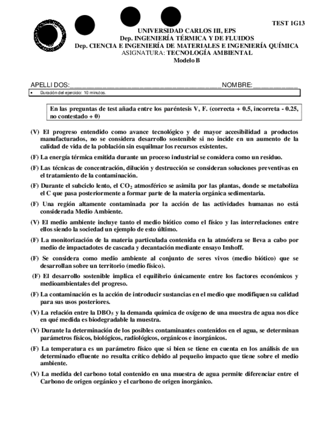 He publicado nuevos apuntes de 4º Tecnología Ambiental: Preguntas tipo test