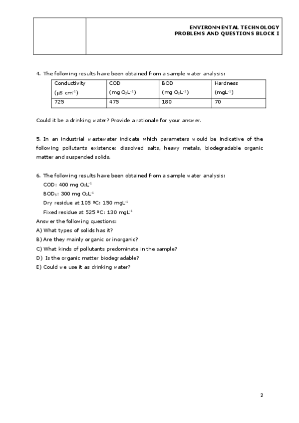 He publicado nuevos ejercicios de 2º Tecnología Ambiental: Problemas Bloques I II III.pdf
