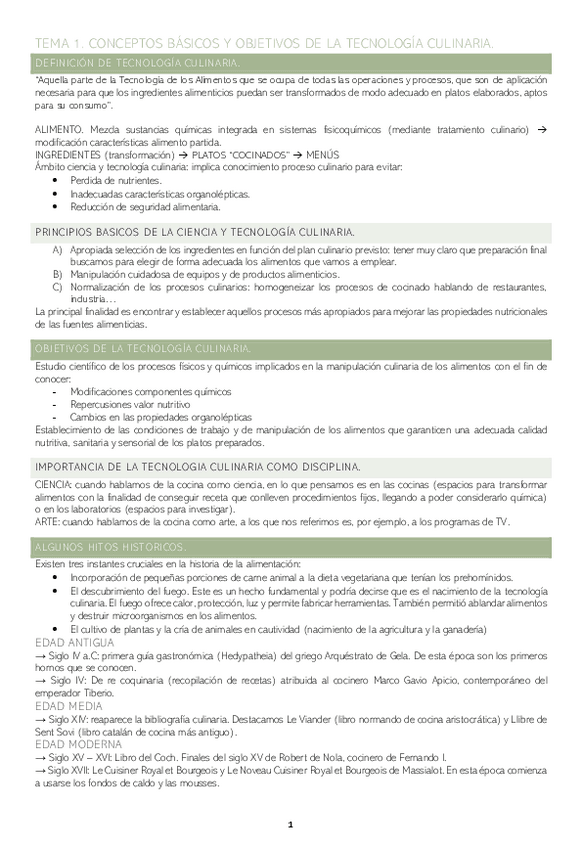 Apuntes del tema 1 de tecnología culinaria y alimentaria de 2º de Nutrición Humana y Dietética en la USC - campus de Lugo. -